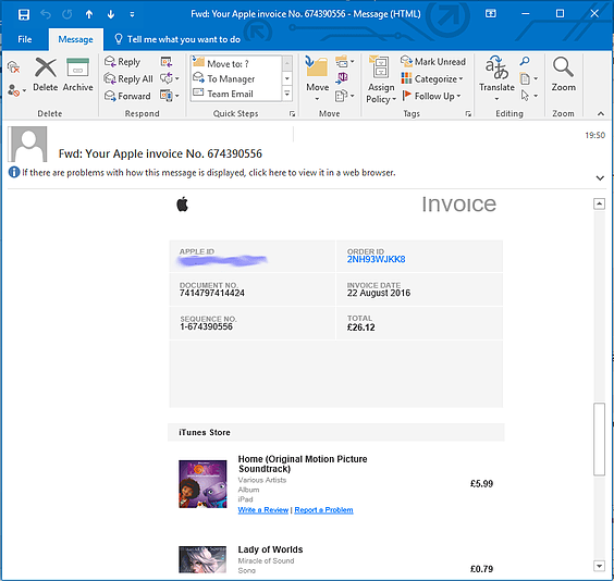 And that's where it failed. The tempting refund option. The email looks incredibly like the real thing, especially when you are looking at it fleetingly on an iPhone and when you think you've just paid over £25 for music that's not your thing.